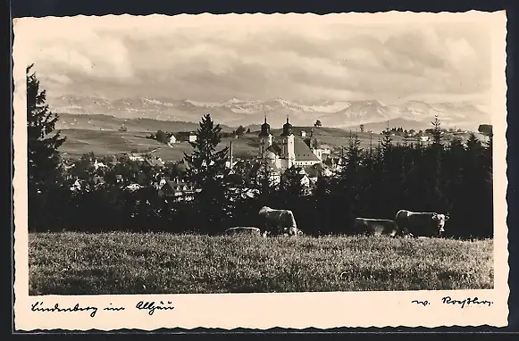 AK Lindenberg / Allgäu, Totalansicht von der Weide aus