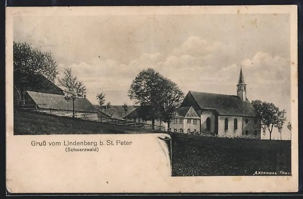 AK Lindenberg / Schwarzwald, Kirche und Bauernhäuser