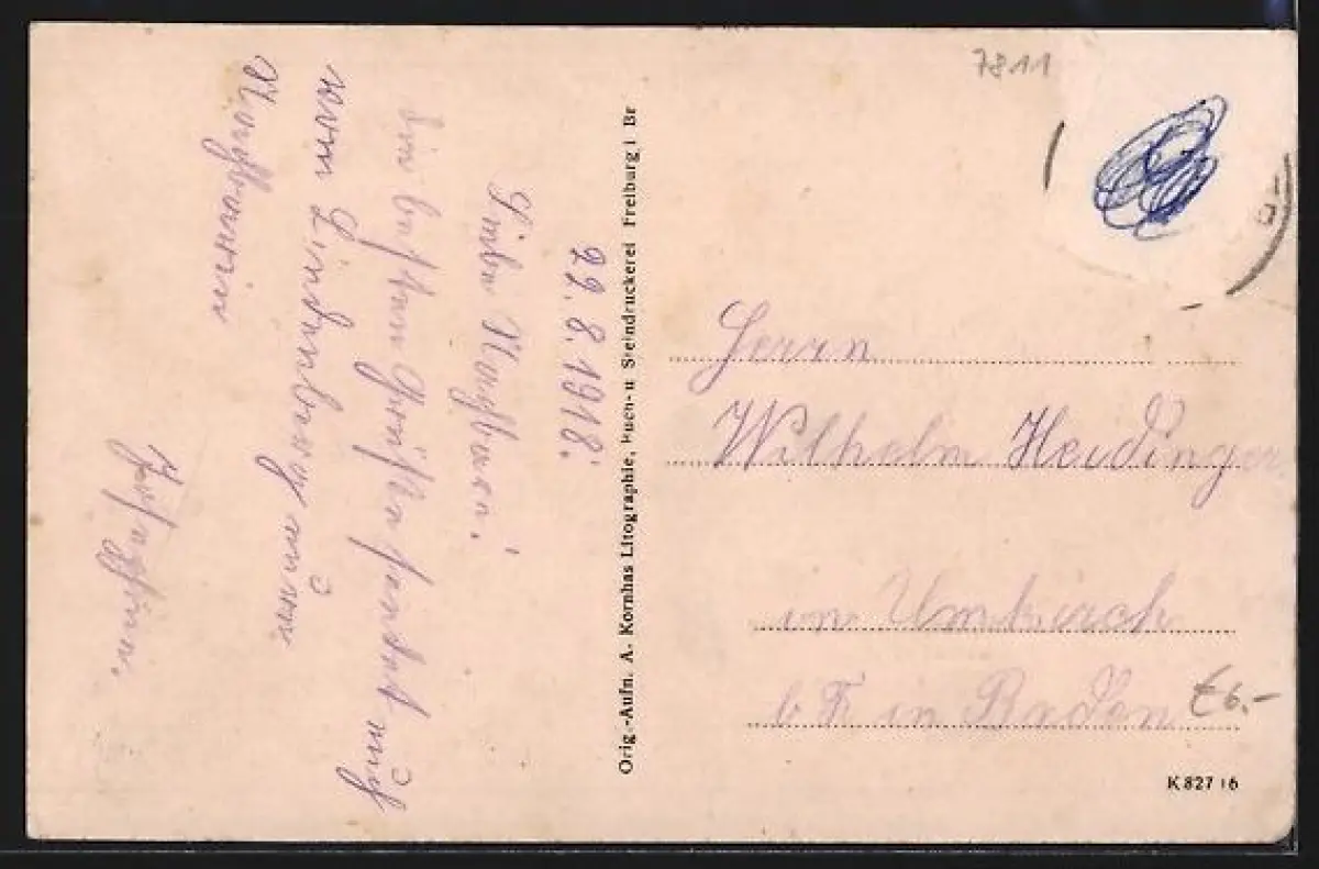 alte Ansichtskarte, gelaufen, Briefmarke entfernt, Eckknick oben links, guter Zustand