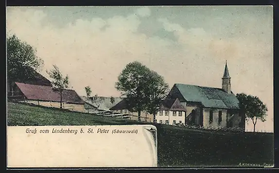 AK Lindenberg b. St. Peter, Ortspartie mit Kirche