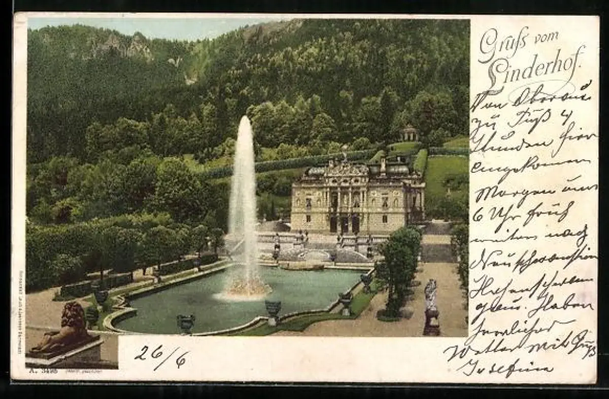AK Linderhof, Schloss mit Springbrunnen
