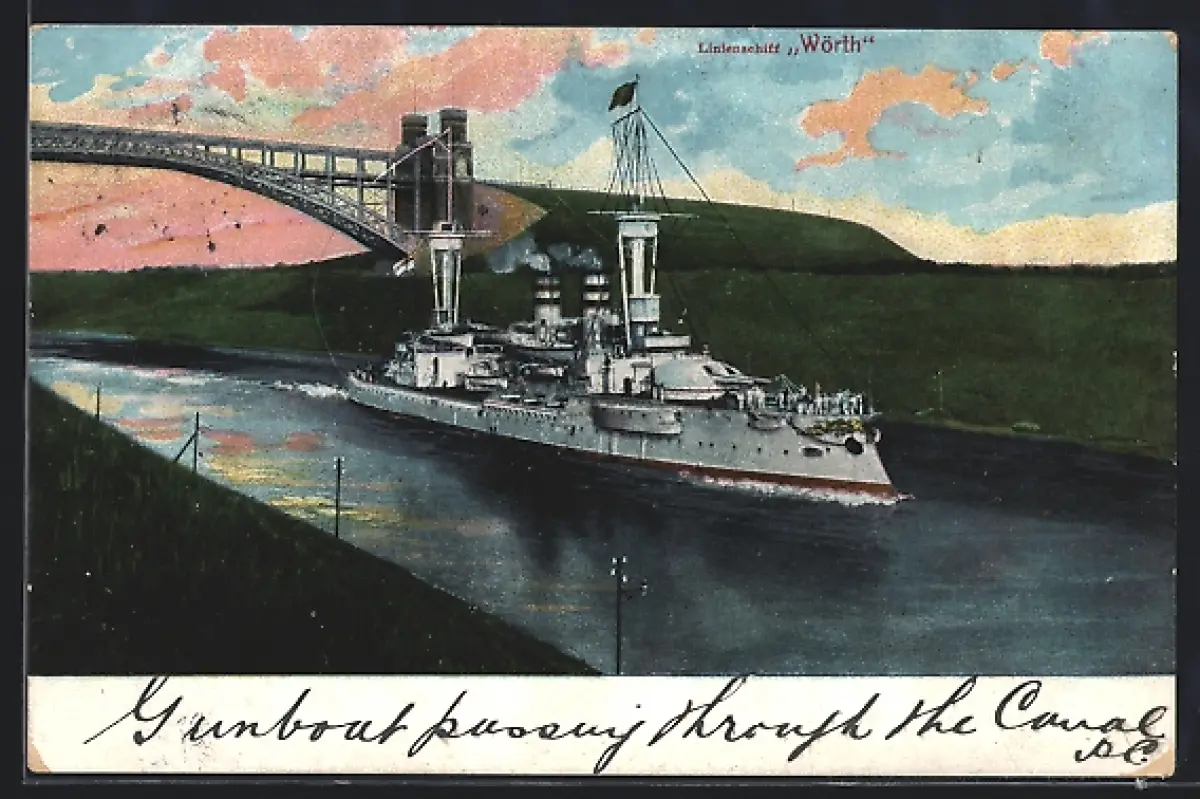 AK Linienschiff Wörth in einem Kanal, Ostasiengeschwader