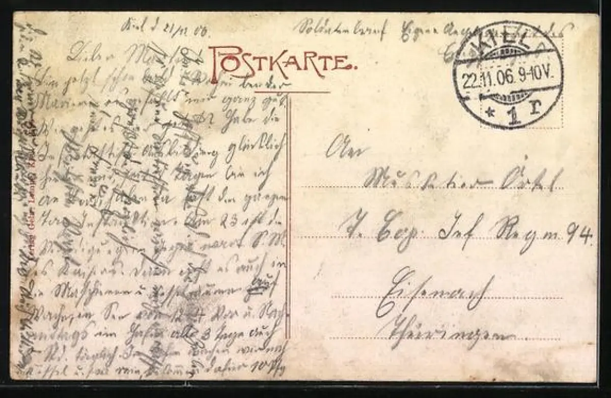 alte Ansichtskarte, gelaufen 1906, Eckknick rechts oben, Einriss rechts mittig, guter Zustand