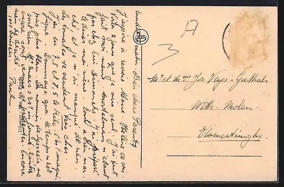 alte Ansichtskarte, gelaufen, Briefmarke entfernt, guter Zustand