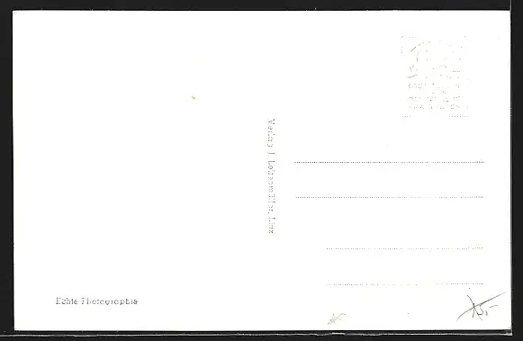 Personenbezogene Daten auf der Rückseite der Karte wurden durch blauen Textmarker unkenntlich gemacht. Die blauen Stellen sind auf die Vorderseite durchgeweicht und wirken sich negativ auf das Postkartenfoto aus