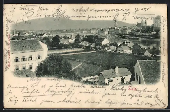 AK Linz, Blick über die Stadt und die Donau