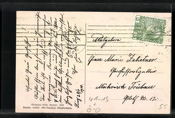 alte Ansichtskarte, gelaufen, Abriebspur li. oben, Stempelspur, guter Zustand