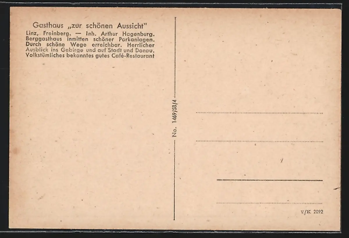 AK Linz /Donau, Gasthaus Zur schönen Aussicht am Freinberg