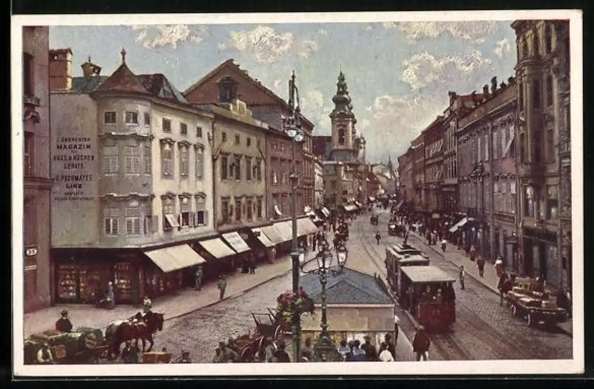 AK Linz, Landstrasse, Strassenbahn