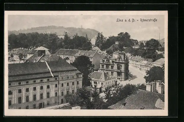 AK Linz, Römerstrasse aus der Vogelschau (Kurve)
