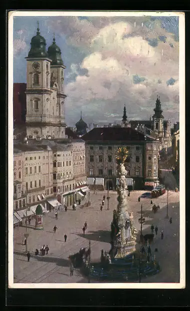 AK Linz a. D., Franz-Josef-Platz aus der Vogelschau