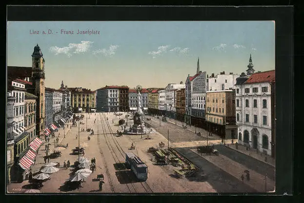 AK Linz a. D., Franz Josefplatz mit Strassenbahn