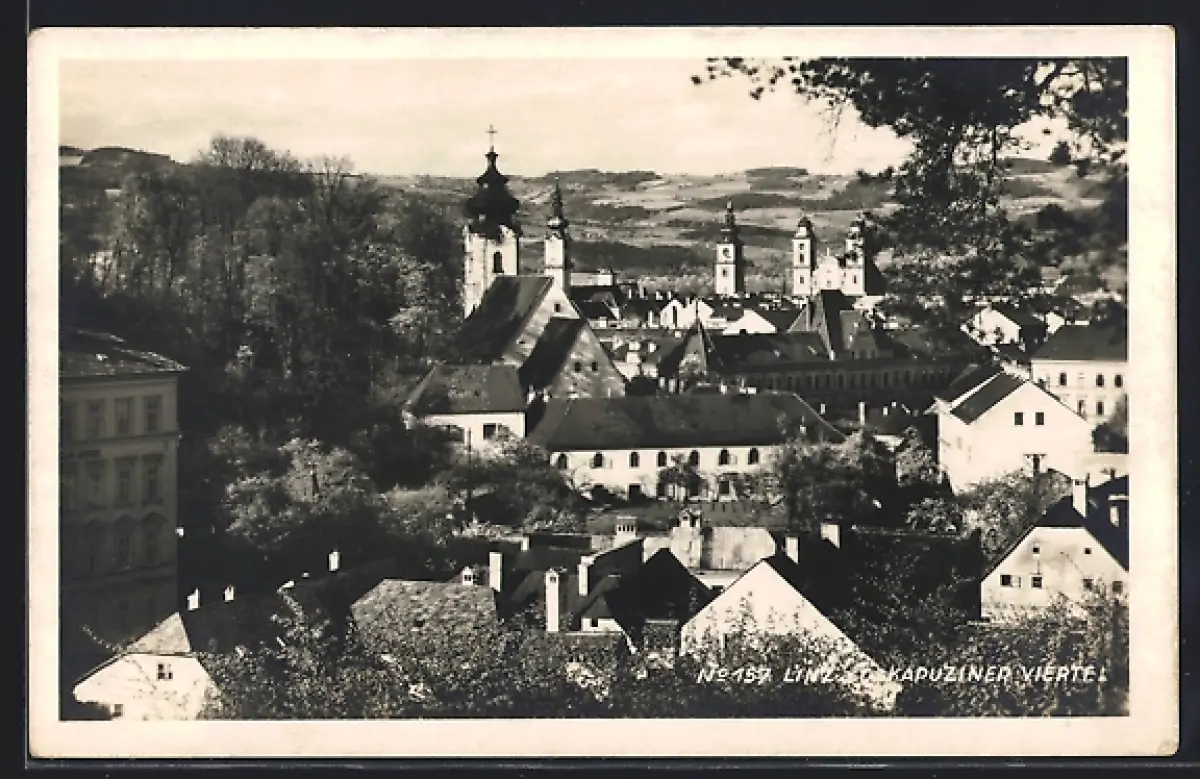 AK Linz a. D., Kapuziner Viertel mit Kirche