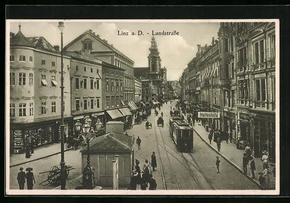 AK Linz a. D., Landstrasse mit Strassenbahn