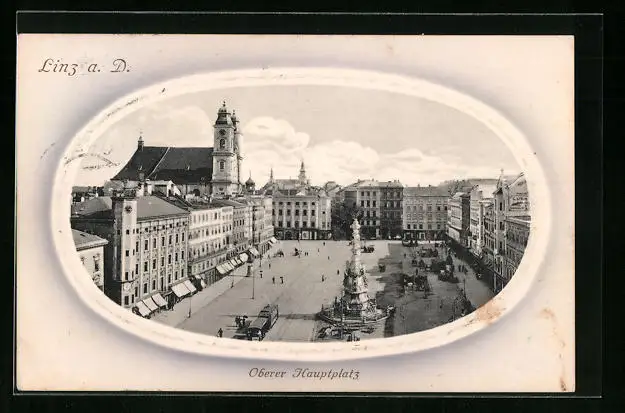 AK Linz a. D., Oberer Hauptplatz im Passepartout-Rahmen