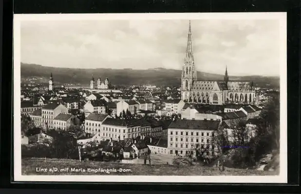 AK Linz a. D., Ortsansicht mit Maria Empfängnis-Dom