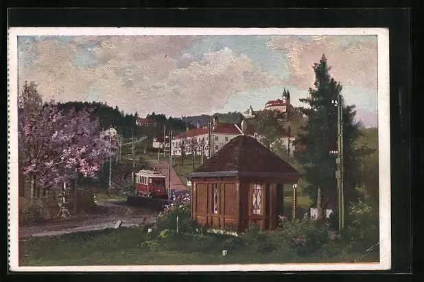 AK Linz a. D., Pöstlingberg mit Bergbahn