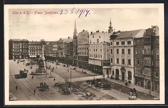 AK Linz a. D., Strassenbahn auf dem Franz Josefplatz