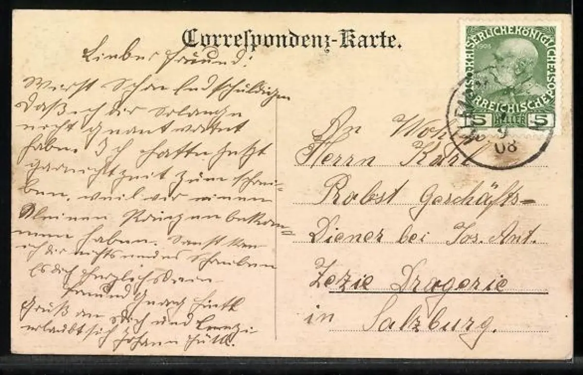 alte Ansichtskarte, gelaufen 1908, guter Zustand