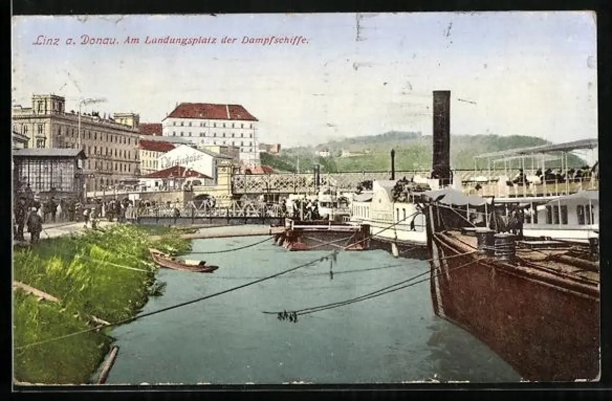 AK Linz a. Donau, Am Landungsplatz der Dampfschiffe