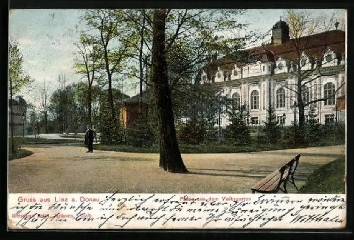 AK Linz a. Donau, Partie aus dem Volksgarten