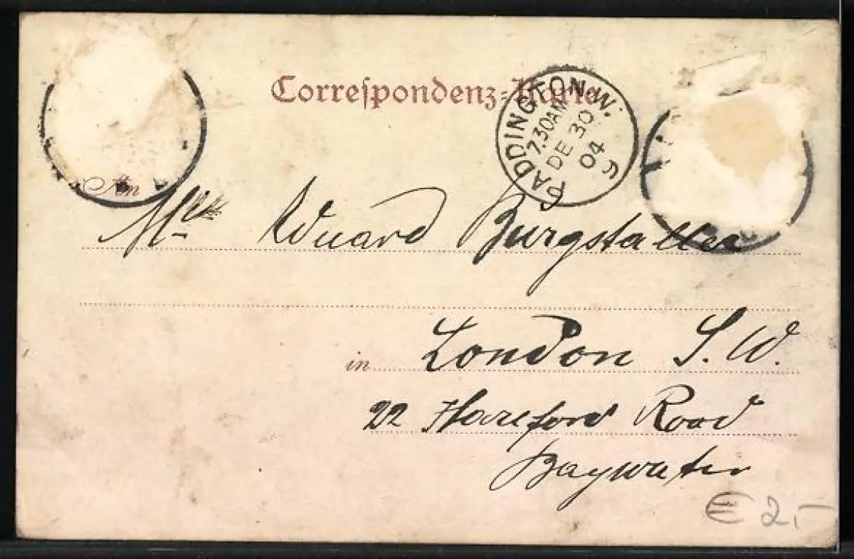 alte Ansichtskarte, gelaufen, Briefmarke entfernt, rückseitig Oberflächenschaden, guter Zustand