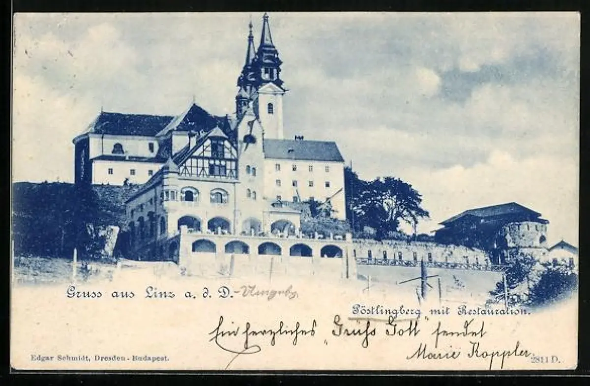 AK Linz a. d. D., Pöstlingberg mit Restauration