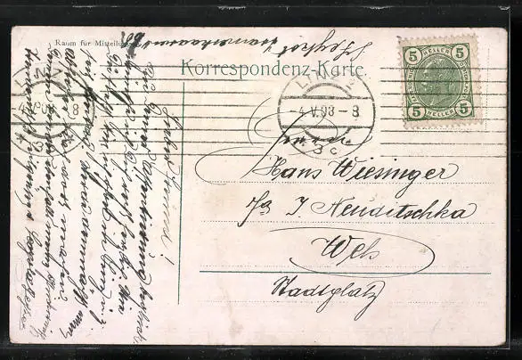 alte Ansichtskarte, gelaufen 1908, guter Zustand