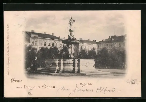 AK Linz a. d. Donau, Brunnen auf dem Marktplatz