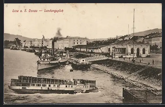 AK Linz a. d. Donau, Dampfer Herzogin von Hohenberg, Landungsplatz