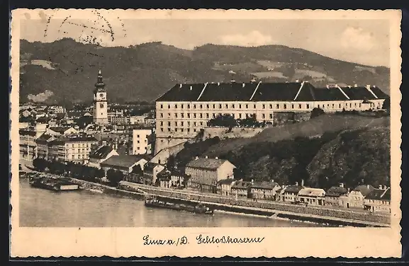 AK Linz a. d. Donau, Ortsansicht mit Uferpartie