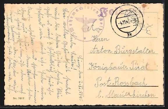 alte Ansichtskarte, gelaufen 1940, Stempelspur, guter Zustand