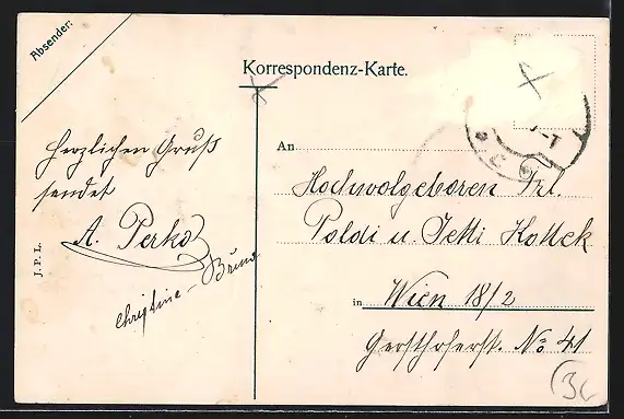 alte Ansichtskarte, gelaufen, Briefmarke entfernt, rückseitig Oberflächenschaden, Stempelspur, guter Zustand