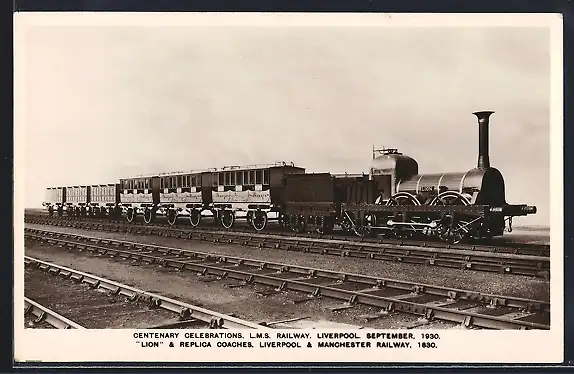 AK Lion & Replica Coaches, Liverpool & Manchester Railway, englische Eisenbahn