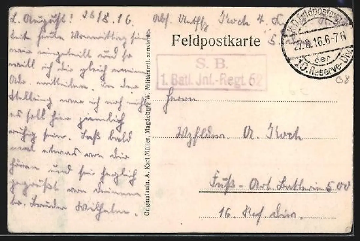 gelaufen 1916, Bugspur li. oben, guter Zustand