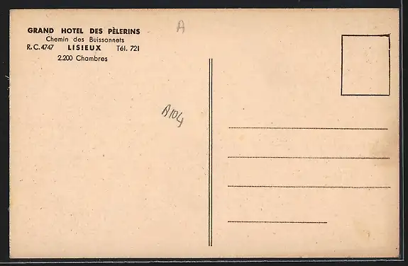 AK Lisieux, Hôtel des Pèlerins sur le Chemin des Buissonnets
