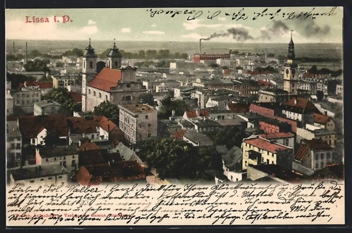 AK Lissa i. P., Ortspanorama aus der Vogelschau