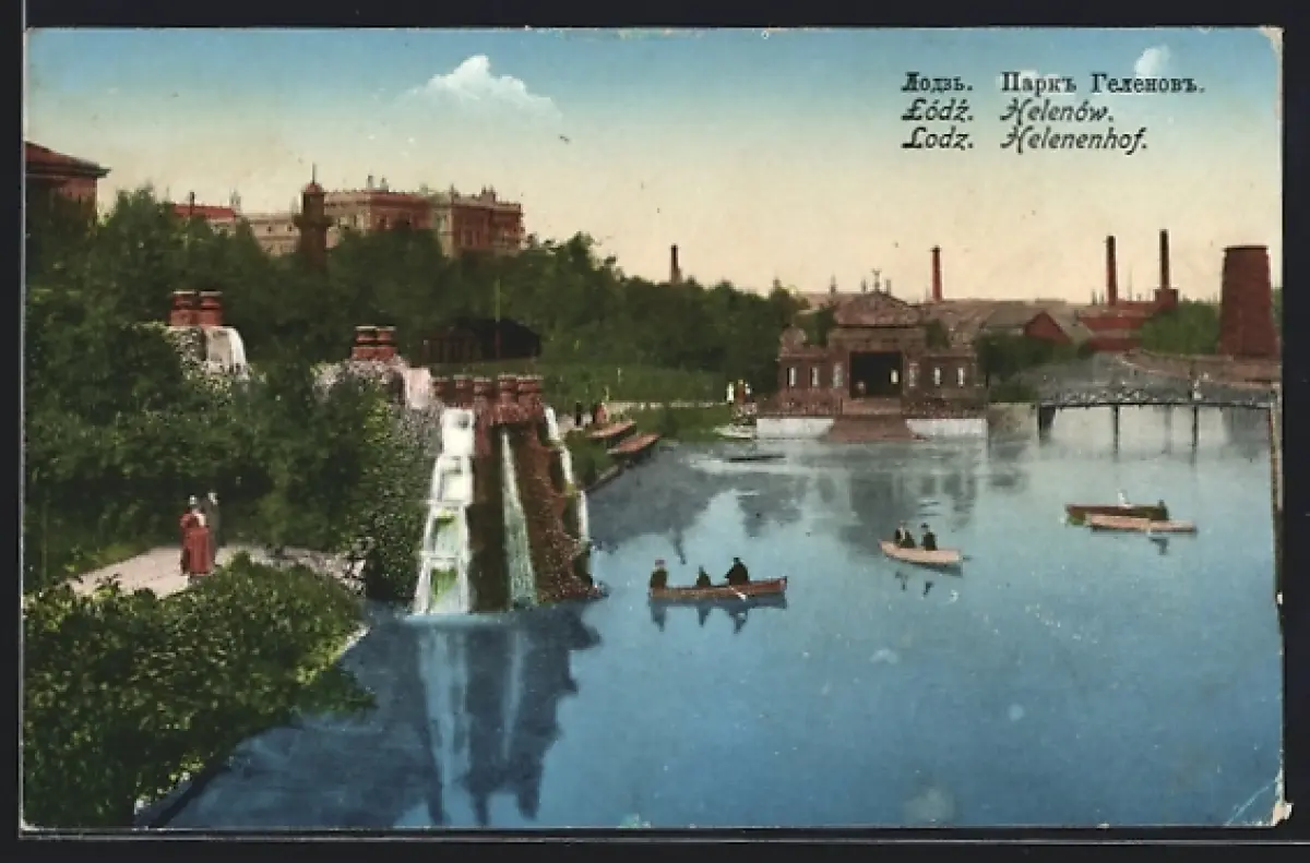 AK Litzmannstadt-Lodz, Helenów, Helenenhof mit Kaskaden