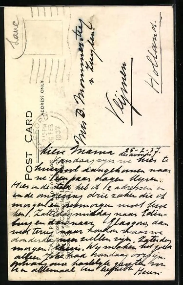 alte Ansichtskarte, gelaufen 1937, Briefmarke entfernt, guter Zustand