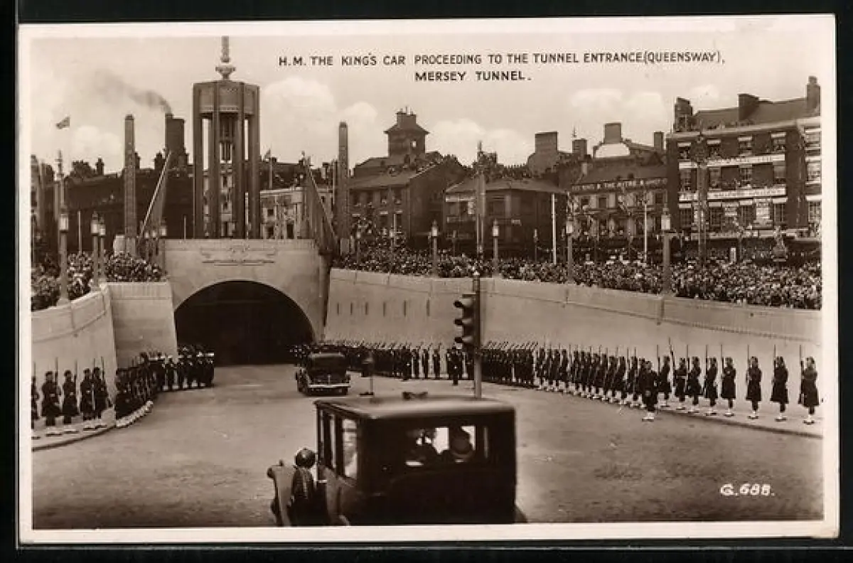 AK Liverpool, The King`s Car Proceeding to the Tunnel Entrance, Mersey Tunnel
