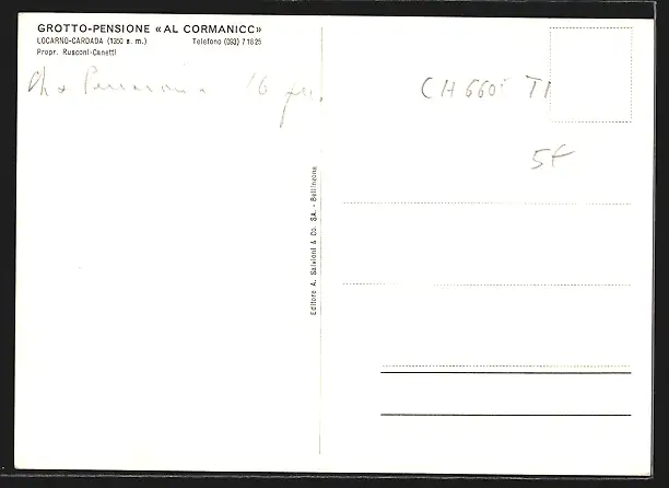 AK Locarno-Cardaa, Grotto-Pensione Al Cormanicc