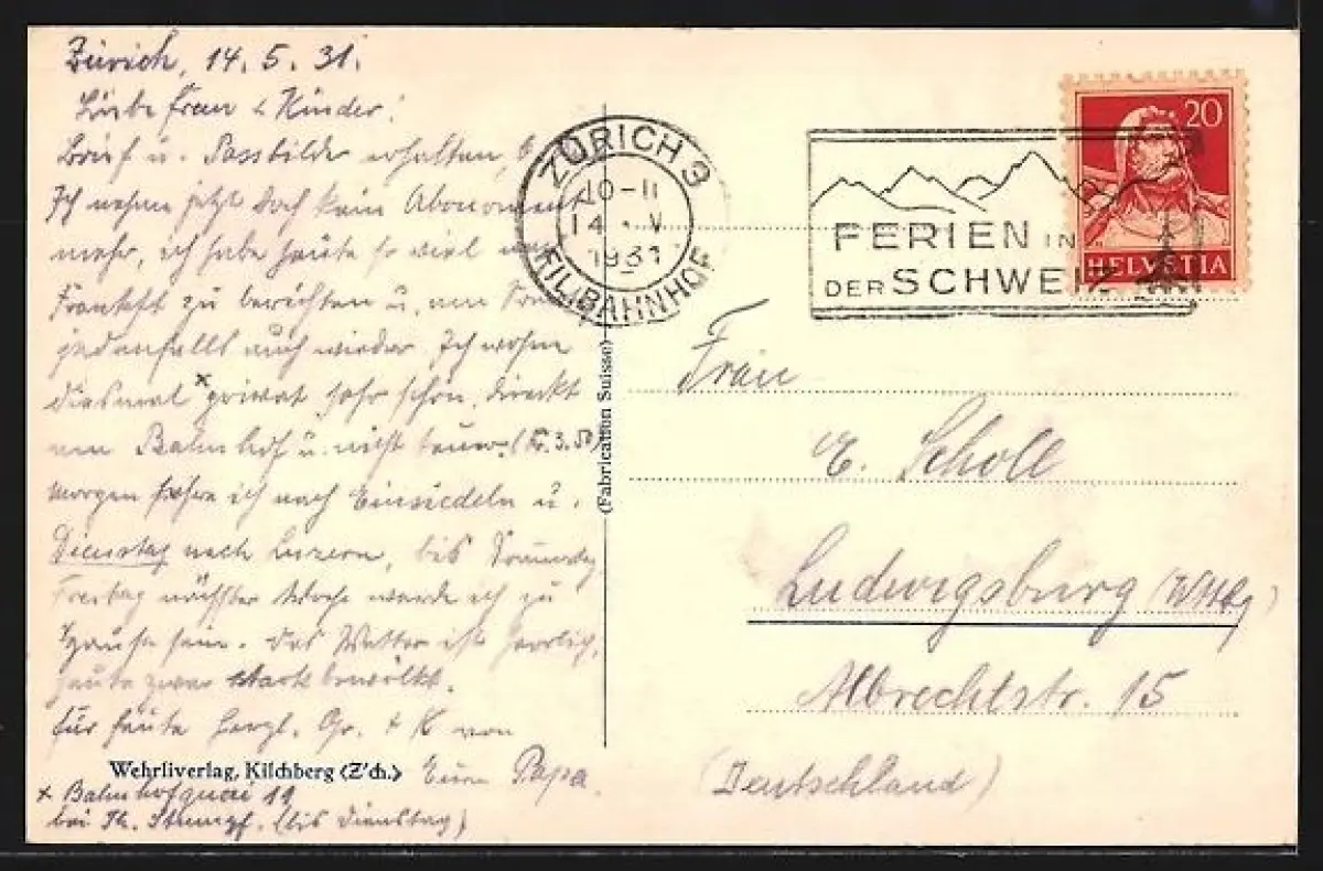 alte Ansichtskarte, gelaufen 1931, guter Zustand