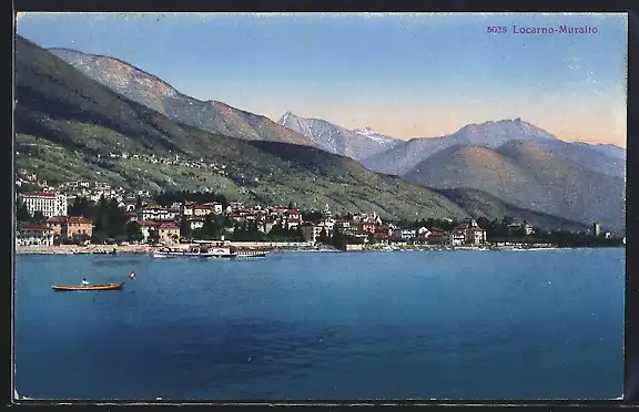 AK Locarno-Muralto, Ortspanorama mit Bergen vom Wasser aus