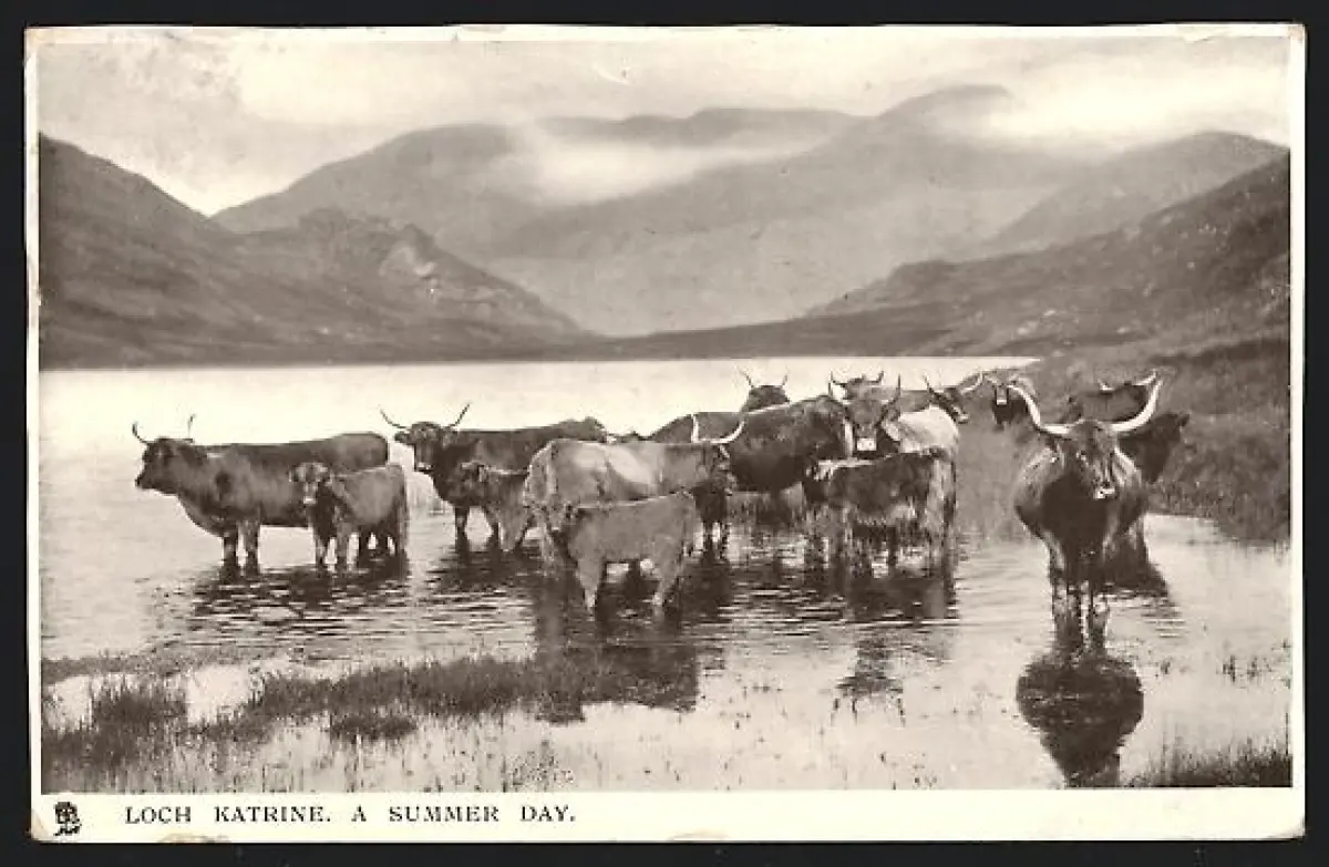 AK Loch Katrine, Cattle on the banks of Loch Katrine on a summer day