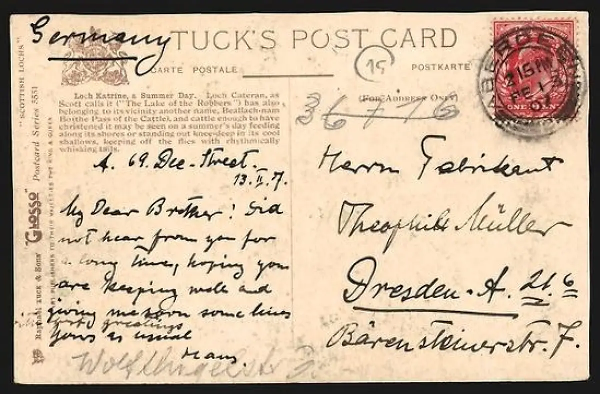 alte Ansichtskarte, gelaufen 1907, geringer Oberflächenschaden, sonst guter Zustand