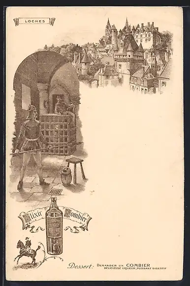 AK Loches, Vue du château et scène historique avec soldat et baril