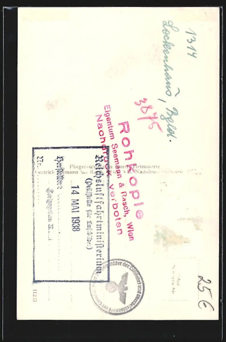 alte Ansichtskarte, ungelaufen, Briefmarke entfernt, rückseitig Oberflächenschaden, guter Zustand