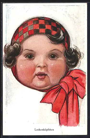 AK Lockenköpfchen, Kindergesicht mit Mütze und Schal