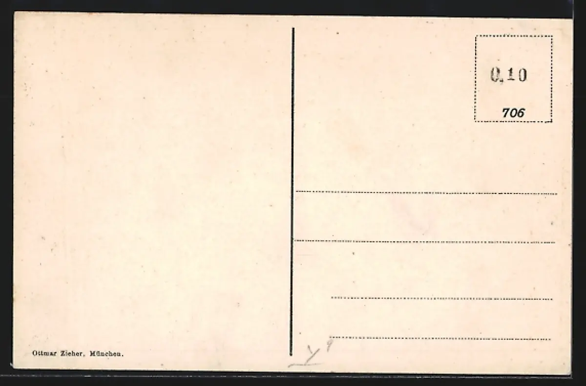 Personenbezogene Daten auf der Rückseite der Karte wurden durch blauen Textmarker unkenntlich gemacht. Die blauen Stellen sind auf die Vorderseite durchgeweicht und wirken sich negativ auf das Postkartenfoto aus