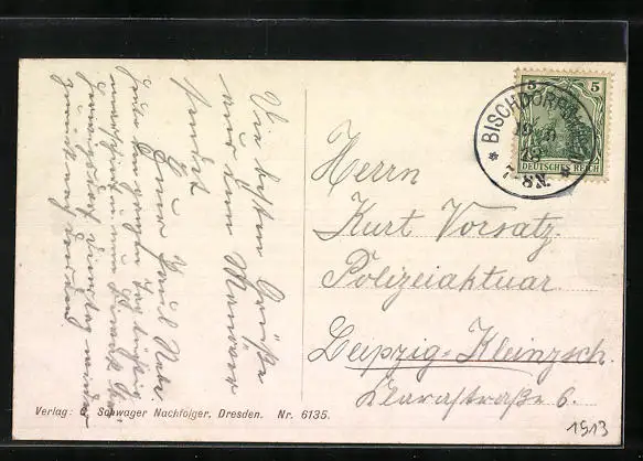 alte Ansichtskarte, gelaufen 1913, Stempelspur, guter Zustand